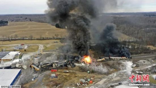 2月6日,俄亥俄州東巴勒斯坦城上空出現(xiàn)黑色濃煙。