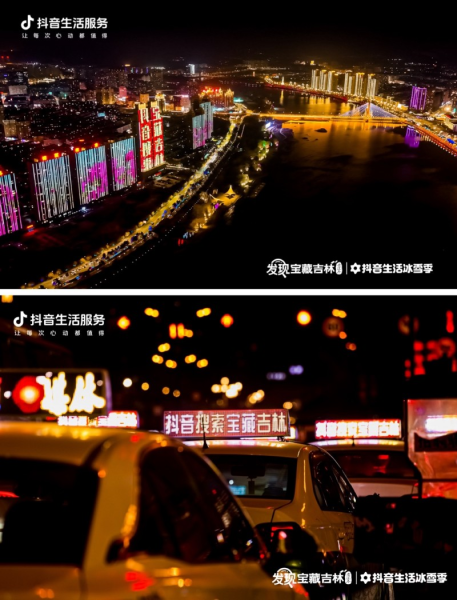 借助短視頻的傳播,吉林震撼的冬季霧凇景觀被更多網(wǎng)友看到。進入12月,抖音生活服務(wù)在吉林市阿什小霧凇島落地“登島趕大吉”活動,帶動小霧凇島搜索量創(chuàng)冬季新高,吉林市抖音團購搜索量顯著增長。系列活動得到吉林市委市政府的大力支持。華燈初上,吉林市松花江畔的地標(biāo)樓體上燈光閃爍著“抖音搜索,寶藏吉林”字樣。全市穿梭街巷的數(shù)千輛出租車車頂燈箱,也在提醒本地市民及異地游客關(guān)注“發(fā)現(xiàn)寶藏吉林”活動。