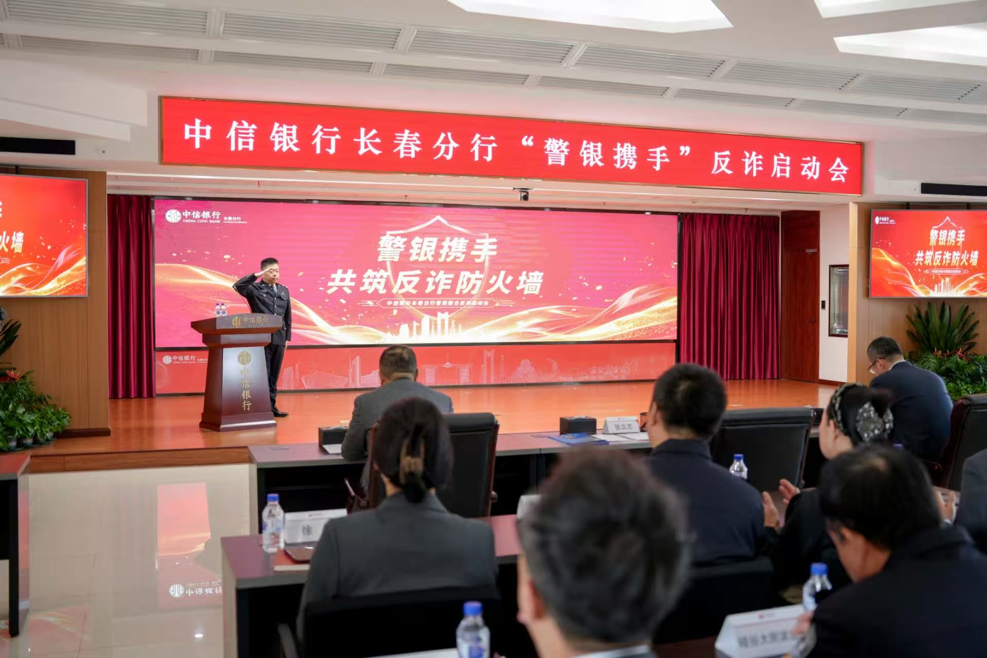 長春分行黨委書記代表中信銀行致辭:中信銀行長春分行將始終踐行“金融為民”理念,堅決履行反詐管理的主體責任。同時,積極聯(lián)合公安、監(jiān)管、社區(qū)等多方力量,在反詐宣傳、勸阻受騙群眾、打擊涉詐犯罪等方面凝聚強大合力,推動全社會共同參與反詐的大格局形成。