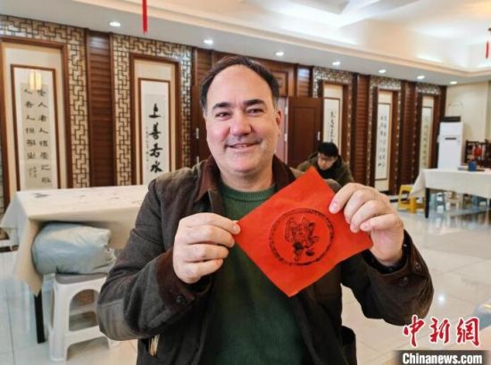 涂墨、鋪紙、錘拓,揭下紙張……一個個喜氣洋洋的“!弊周S然紙上。大年初六,在吉林長春文廟,來自西班牙的達(dá)奇體驗了一次用雕版印刷的方式拓印福字,濃濃的墨香里散發(fā)著濃濃的年味。