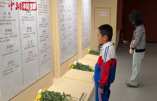 在館內,眾人紛紛走近東北著名抗日英烈名錄紀念墻,敬獻菊花。85歲的安桂榮從輪椅上下來,緩步靠近紀念墻,看到“楊靖宇”三個字時異常激動!坝肋h忘不了革命烈士為我們流的血,我們不能讓悲慘的歷史重演!