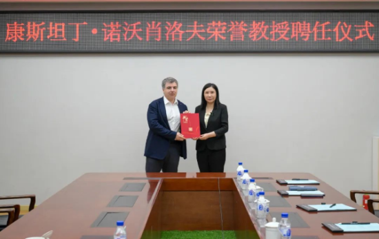 在聘任儀式上,郝群代表學(xué)校向康斯坦丁·諾沃肖洛夫教授頒發(fā)長春理工大學(xué)榮譽教授聘書。會談結(jié)束后,康斯坦丁·諾沃肖洛夫教授在東區(qū)圖書館報告廳為長春理工大學(xué)師生帶來了一場以“面向未來的材料”為主題的學(xué)術(shù)報告。