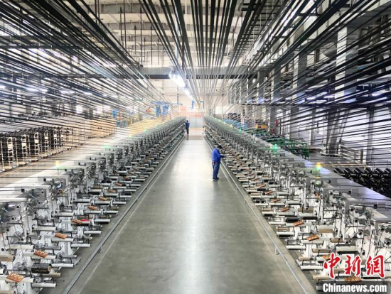 工人正在碳纖維生產(chǎn)線忙碌,這一新材料可應(yīng)用于無人機(jī)制造!〖质形麄鞑抗﹫D