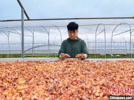 工作人員正在檢查晾曬的新產(chǎn)品!∈橛 攝