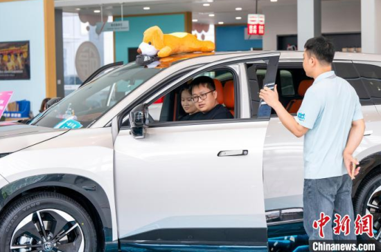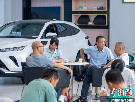 6月3日,廣西梧州市一汽車專賣店內(nèi),顧客在了解選購車型并咨詢汽車“以舊換新”補(bǔ)貼政策。今年以來,梧州市汽車消費(fèi)市場持續(xù)活躍,成為拉動(dòng)消費(fèi)增長重要引擎,新能源汽車成消費(fèi)亮點(diǎn)。眾多車企推出優(yōu)惠補(bǔ)貼,疊加國家和地方補(bǔ)貼政策,加大購車優(yōu)惠力度,吸引消費(fèi)者進(jìn)店咨詢選購、試乘試駕,助推銷量穩(wěn)步提升。何華文 攝