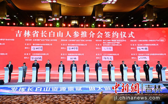 推介會(huì)上,與會(huì)人員共同觀看了長(zhǎng)白山人參專(zhuān)題宣傳片。通化市委書(shū)記孫簡(jiǎn),白山市委書(shū)記、長(zhǎng)白山保護(hù)開(kāi)發(fā)區(qū)黨工委書(shū)記謝忠?guī)r,延邊州委副書(shū)記馮濤,分別推介人參產(chǎn)業(yè)發(fā)展情況;中國(guó)民族貿(mào)易促進(jìn)會(huì)以及吉林華瑞參業(yè)有限公司等企業(yè)代表分別發(fā)言;進(jìn)行了項(xiàng)目集中簽約。