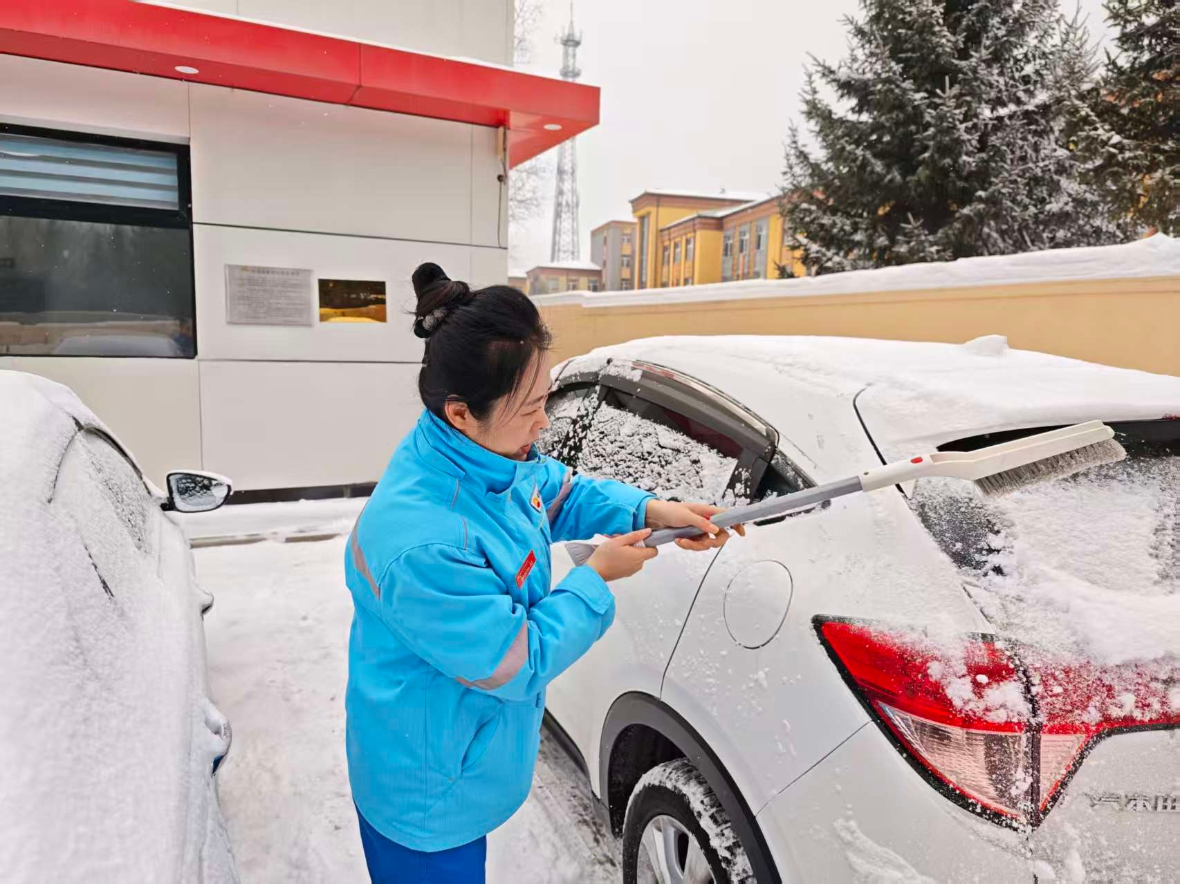 白山分公司三岔子站員工化身“清雪衛(wèi)士”,手持清雪工具,為每一輛進(jìn)站車(chē)輛仔細(xì)清掃擋風(fēng)玻璃與車(chē)燈上的積雪冰霜,保障行車(chē)視線(xiàn)清晰。“雪天開(kāi)車(chē)最怕視線(xiàn)不清,你們幫忙清理干凈,心里一下子就踏實(shí)了!彼緳C(jī)王師傅由衷地感謝。