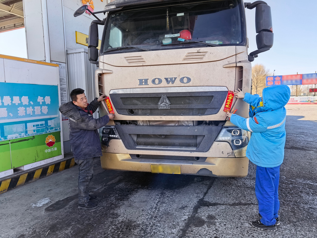 吉林市分公司磐石煙筒山站內(nèi),紅燈籠錯(cuò)落懸掛,節(jié)日商品琳瑯滿(mǎn)目,休息區(qū)姜茶暖香四溢!皫煾担荛L(zhǎng)途返鄉(xiāng),胎壓有點(diǎn)偏低,需要幫忙調(diào)整嗎?”加油員一邊加油,一邊細(xì)心提醒,細(xì)致服務(wù)贏得司機(jī)連連道謝。