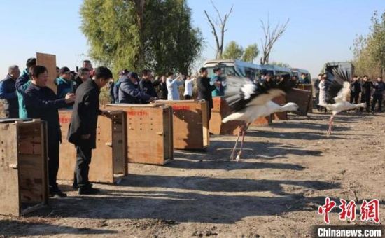 中新網(wǎng)長(zhǎng)春11月19日電 (張瑤 王萬(wàn)峰)吉林省林業(yè)和草原局19日介紹,該局近日組織野生動(dòng)物救護(hù)部門將救助的11只東方白鸛成功護(hù)送到天津七里海國(guó)家濕地公園與已遷徙至那里的種群匯合。這是吉林省第一次大規(guī)模跨省護(hù)送“鳥(niǎo)界國(guó)寶”東方白鸛歸隊(duì)。