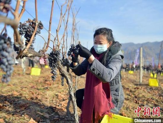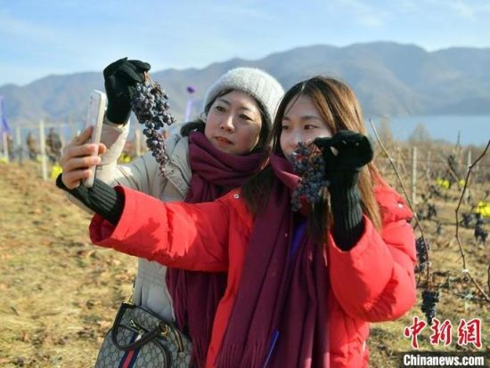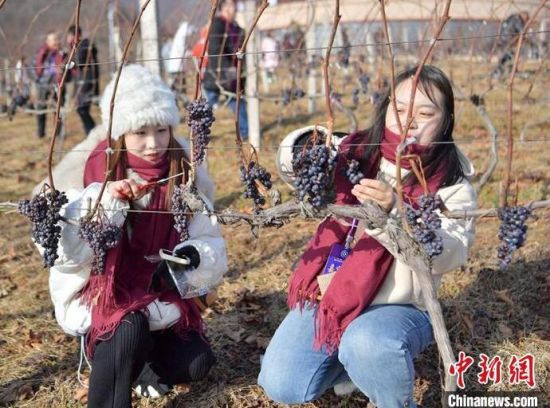 12月9日,吉林集安鴨綠江河谷,游客采摘冰葡萄。集安市所在的鴨綠江河谷與法國著名葡萄酒產(chǎn)地羅納河谷處于同一緯度,同屬世界葡萄酒黃金生產(chǎn)帶,當(dāng)?shù)厮a(chǎn)的冰葡萄是釀制冰酒的主要原料。目前,鴨綠江河谷冰葡萄已經(jīng)進入最佳采摘時期。(完)