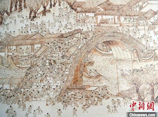 王巖用烙畫技術臨摹的明代清明上河圖。
