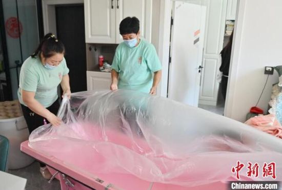 4月30日,吉林長(zhǎng)春,助浴師在為老人洗澡。近來(lái),針對(duì)行動(dòng)不便老人的助浴服務(wù)在長(zhǎng)春悄然興起,在長(zhǎng)春工作的助浴師們“五一”國(guó)際勞動(dòng)節(jié)期間訂單已排滿。(完)