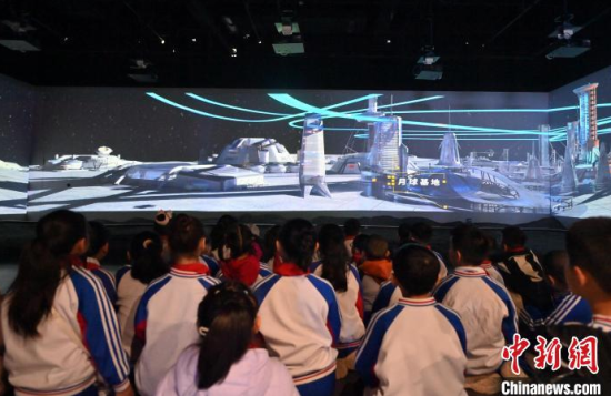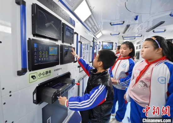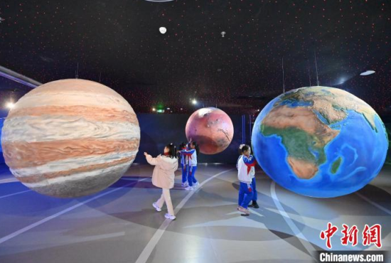 4月9日,吉林長春,小朋友在參觀航天服模型。中國航天日臨近,不少小朋友來到筑夢星辰(長春)航天科教文旅館,通過互動體驗學習航天知識,探索宇宙的奧秘。中新社記者 張瑤 攝