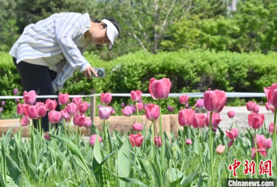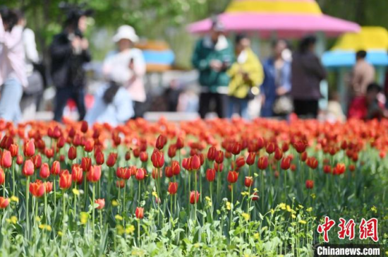 5月15日,在長春市長春公園內(nèi),近十萬株郁金香競相綻放,吸引了眾多游客前來觀賞。當天,“幸福匯·郁見美好”長春公園郁金香主題觀賞季系列活動正式啟幕,游客在賞花觀景中享受夏日清涼。中新社記者 張瑤 攝