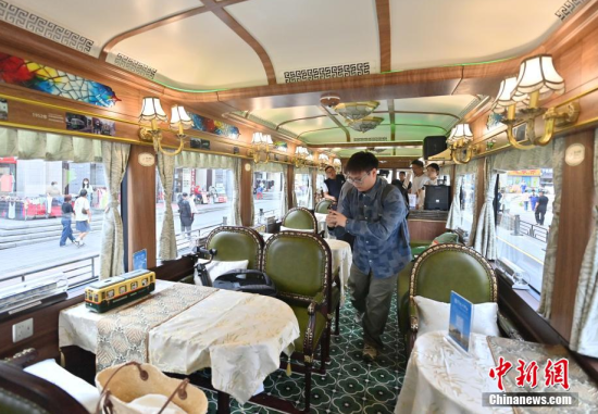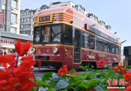 6月4日,吉林長春,市民在氫能源文旅專列旁拍照。該專列由中車長客研制,以歷史文化街區(qū)新民大街建筑群為設(shè)計靈感,車內(nèi)君子蘭花海主題內(nèi)飾與復(fù)古留聲機(jī)相映成趣。列車采用三級安全防護(hù)氫能系統(tǒng),單次加氫續(xù)航320公里。中新社記者 張瑤 攝