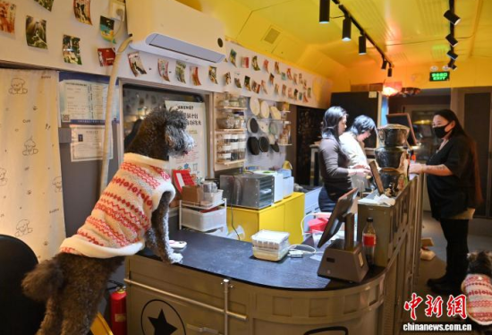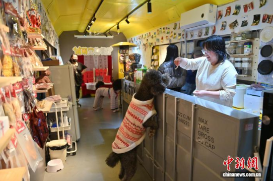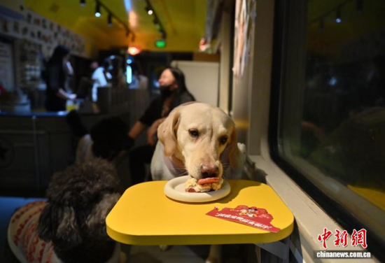 2月11日,吉林長春,小狗在火車車廂主題寵物餐廳旁經(jīng)過。該餐廳集寵物餐飲、游樂與社交功能于一體,為寵物打造沉浸式用餐體驗。臨近春節(jié),后廚正加緊趕制寵物年夜飯,新年禮盒供不應(yīng)求,不少寵主早早預(yù)訂“車廂座位”。中新社記者 張瑤 攝