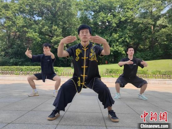 近日,康梓楗(中)和健身“搭子”用中式健身方法鍛煉!∈橛 攝