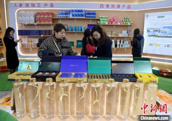消費者在2024長春國際醫(yī)藥健康產(chǎn)業(yè)博覽會上選購人參產(chǎn)品。張瑤 攝