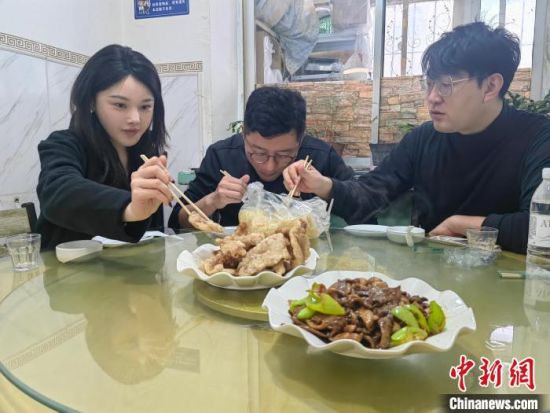 來自天津的游客趙瀟虹攜家人在吉林過年,一家人不僅品嘗鍋包肉,還對各餐館的鍋包肉進行了對比!懊考也说奶攸c都不一樣,有的是酸甜口味占優(yōu),有的是肉片特別有嚼勁!