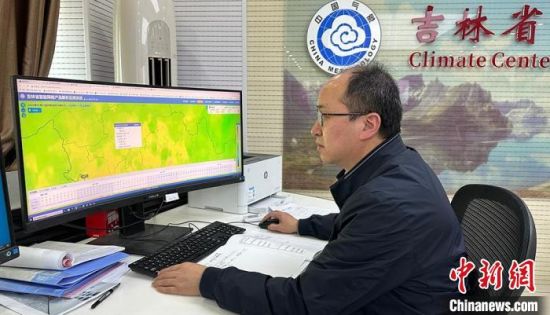 3月23日,吉林省氣象臺臺長陳長勝利用AI輔助預報工作。 郭佳 攝