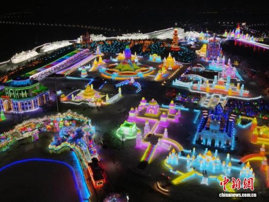 鳥(niǎo)瞰長(zhǎng)春冰雪新天地夜景。(資料圖) 張瑤 攝